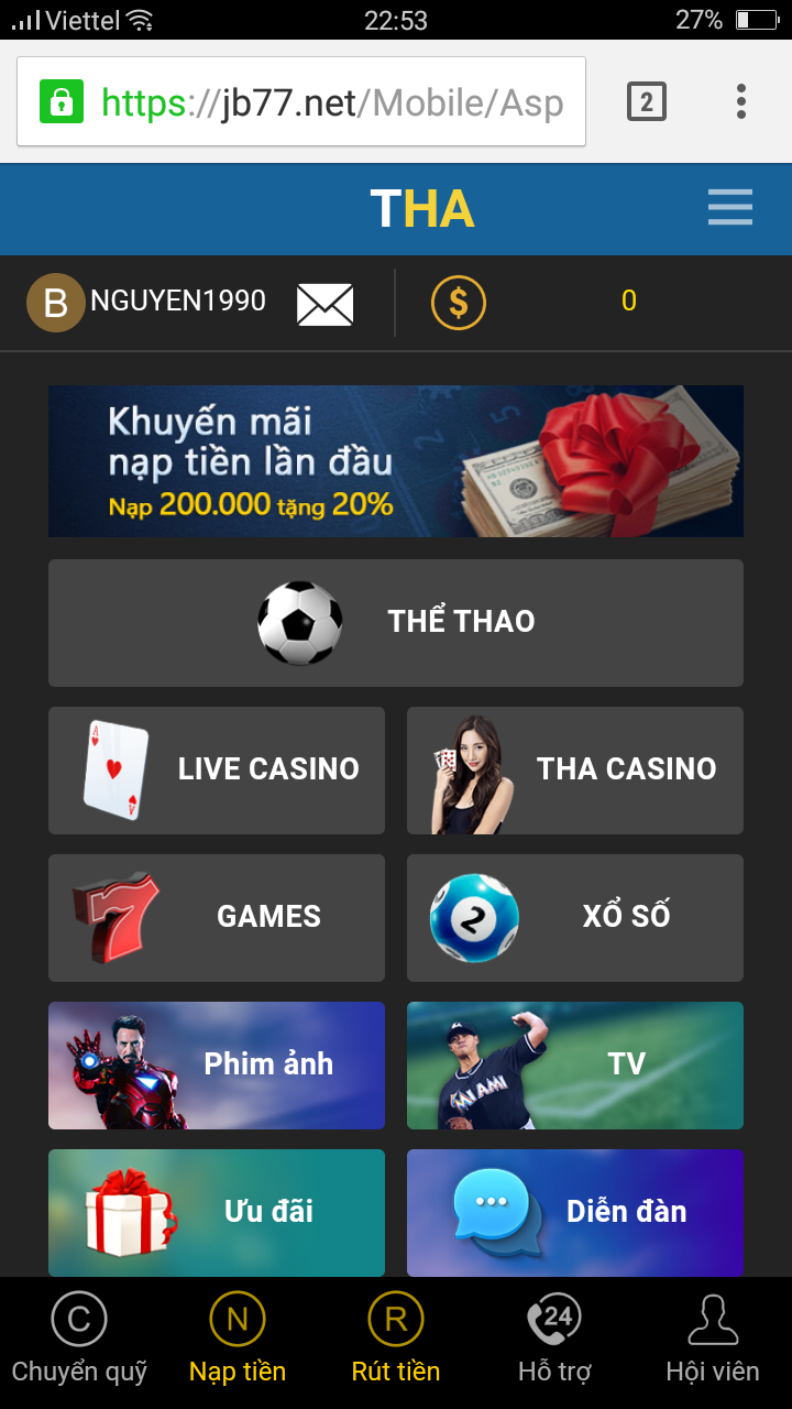 Choi được . Nap rút Ok